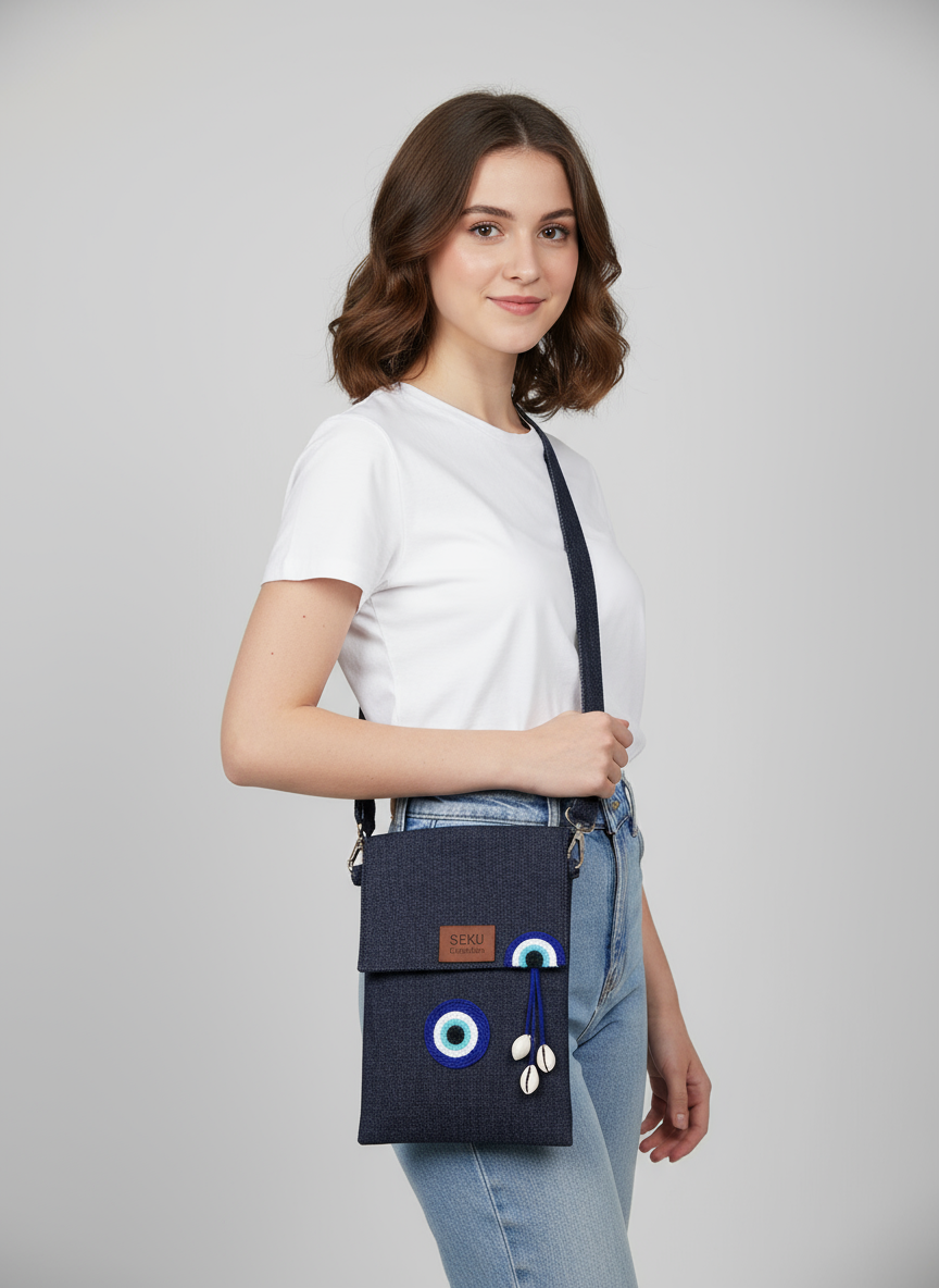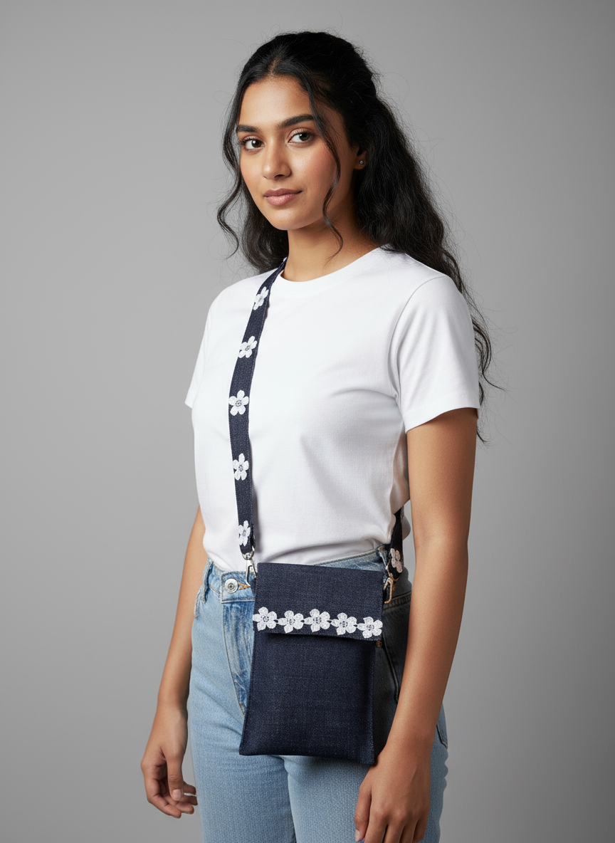 The laptop tote crafted with stripes to give it an ocean-like appearance. Our artisans worked with different pairs of post-consumer jeans and combined it with post-industrial denim. The post-industrial water resistant felt sandwiched between the post-industrial denim fabric and 100% cotton lining material gives structure to the bag.