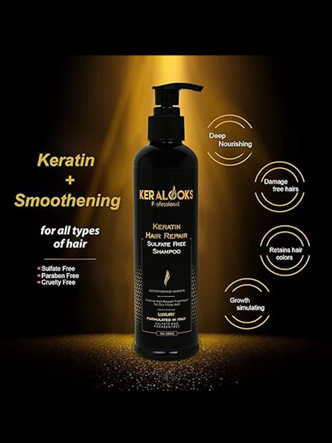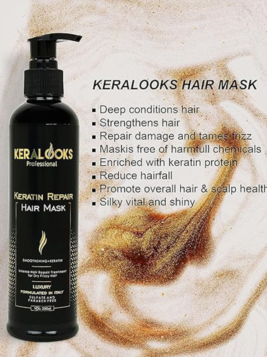 Keralooks Keratin shampoo & hair mask smooths cells that overlap to form hair strands, which means reducing fizz & damage This makes your hair look shiny & Healthier